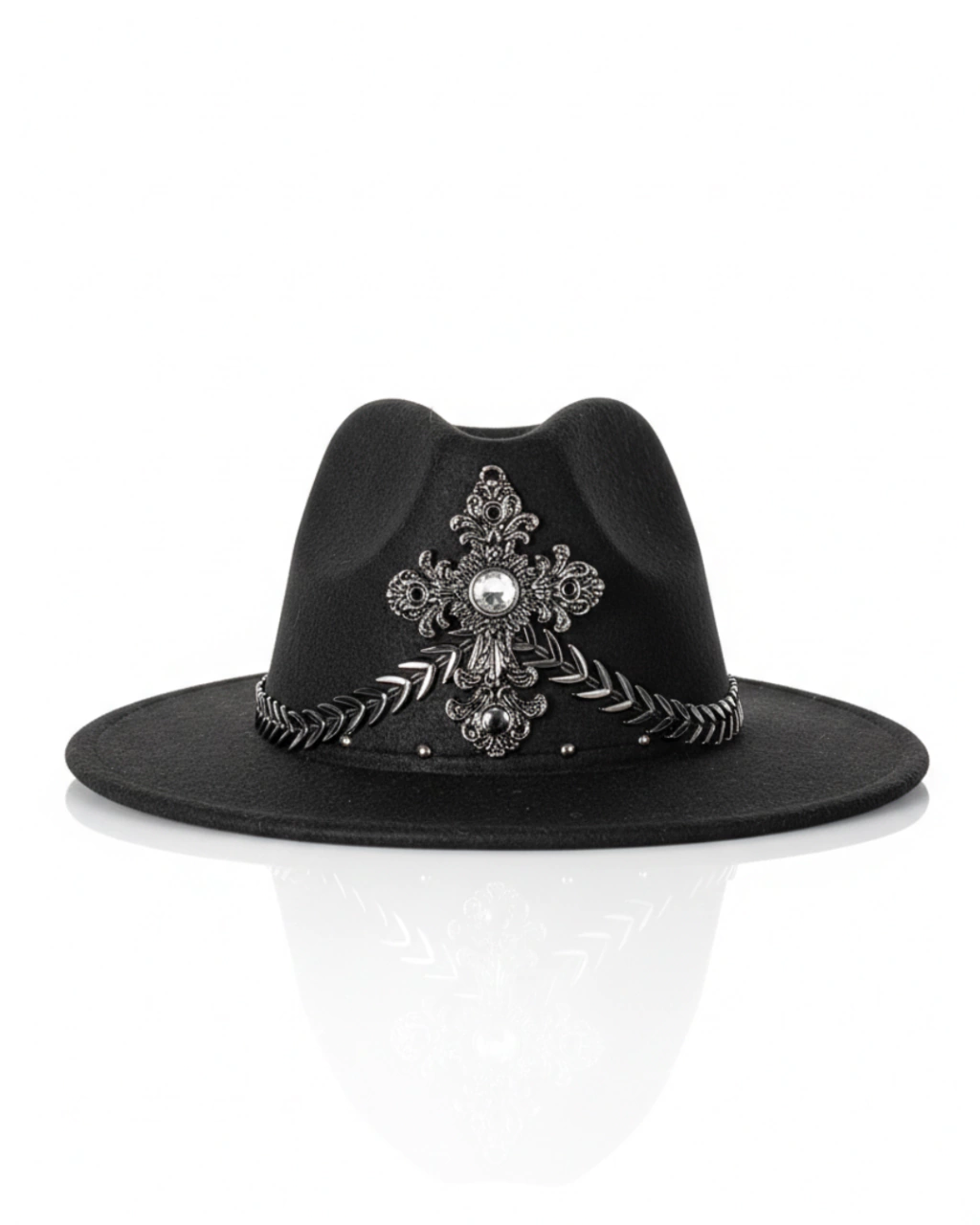 Descubra o poder do estilo com o Fedora Cross, um chapéu fedora com design exclusivo que vai transformar seu visual. O destaque fica por conta do pingente de crucifixo, que adiciona um toque místico e sofisticado, perfeito para quem busca um acessório que une elegância e atitude.